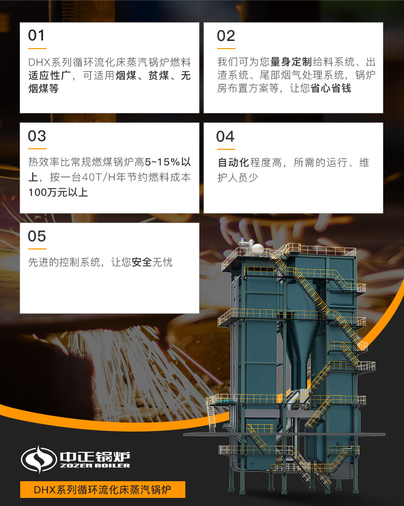 燃料適應性廣且燃燒效率高,特別適合于低熱值劣質煤。